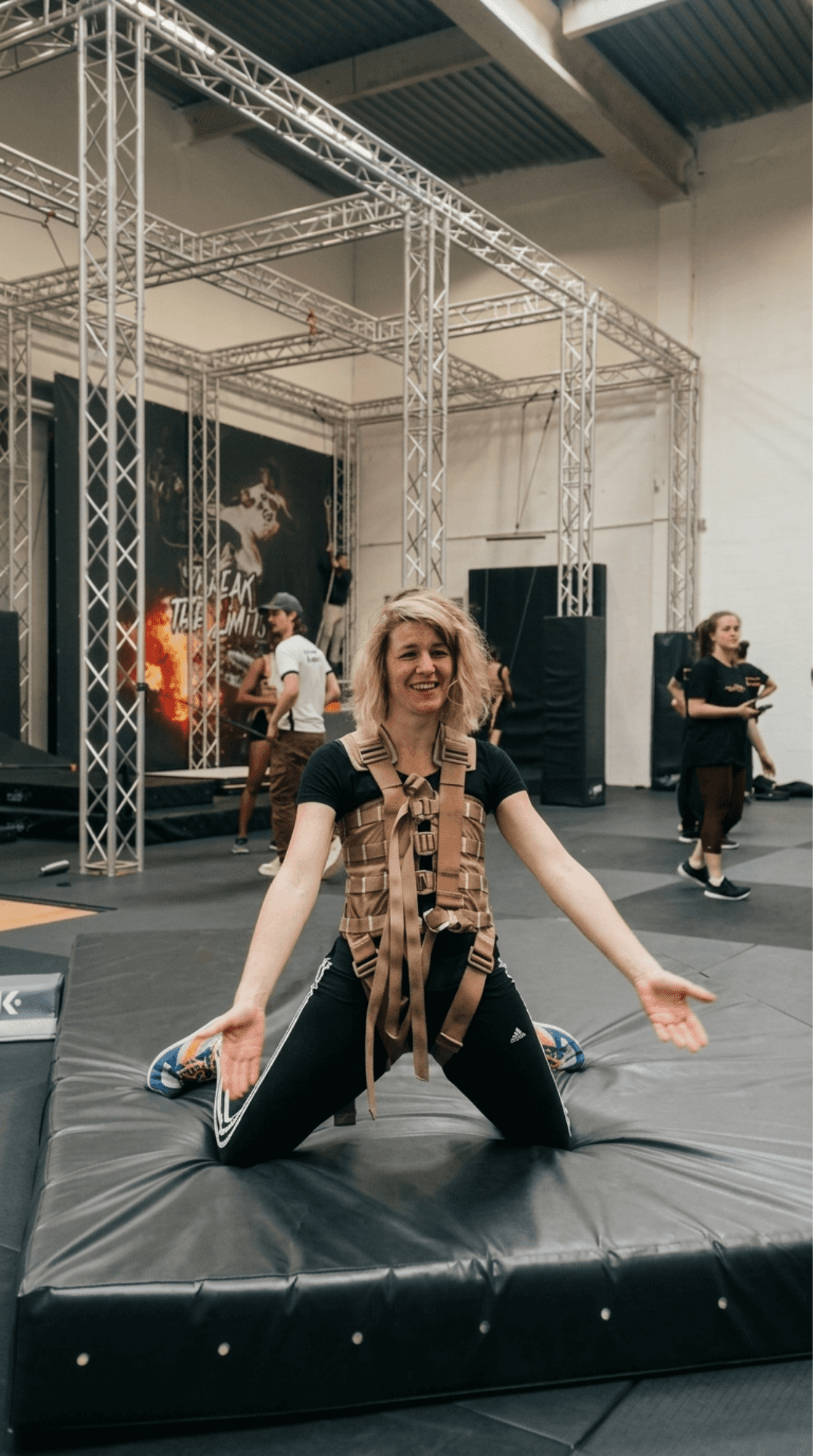 Gymnastique faciale et corps en action où chaque geste devient spectacle.